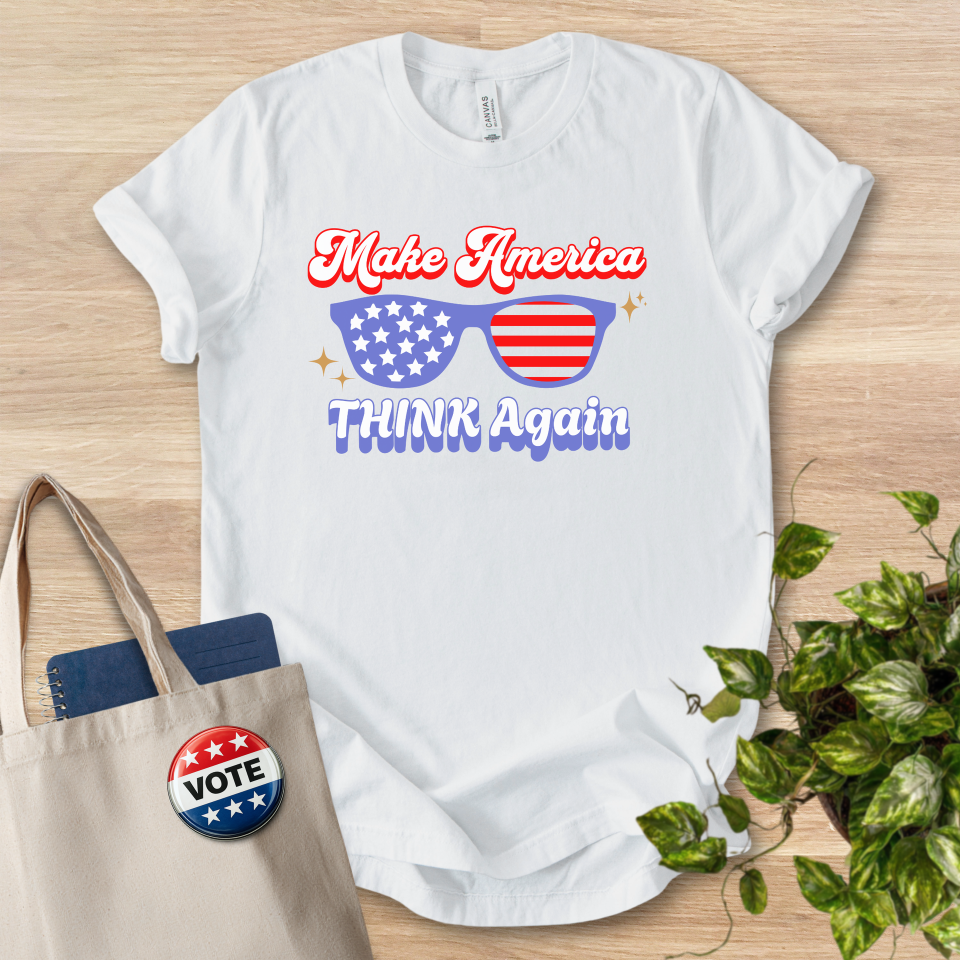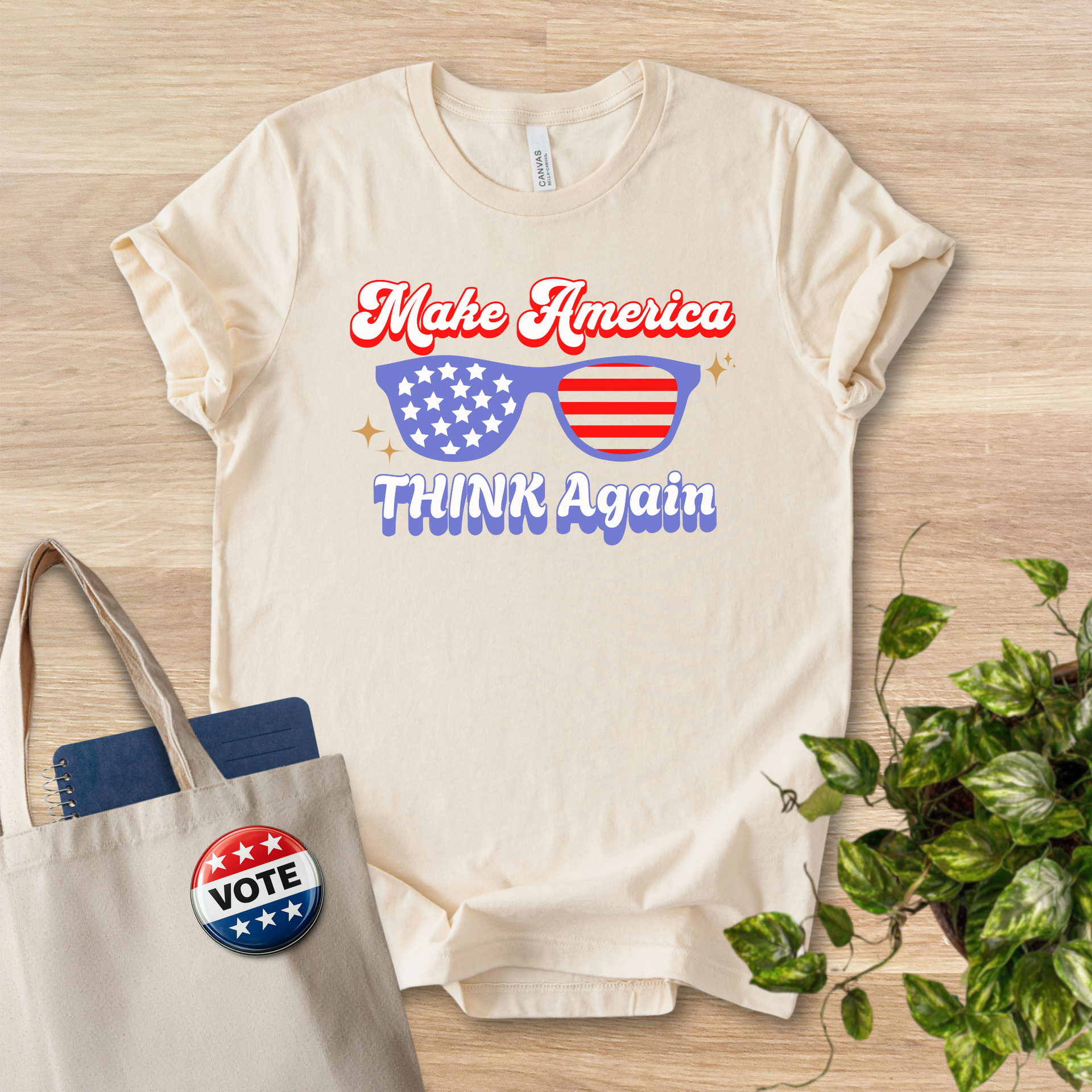 Make America Think Again T-Shirt, Unisex Cotton T-Shirt, Funny Fourth of July Shirt, Anti-Trump Anti-Maga Tee, Progressive Independence Tee