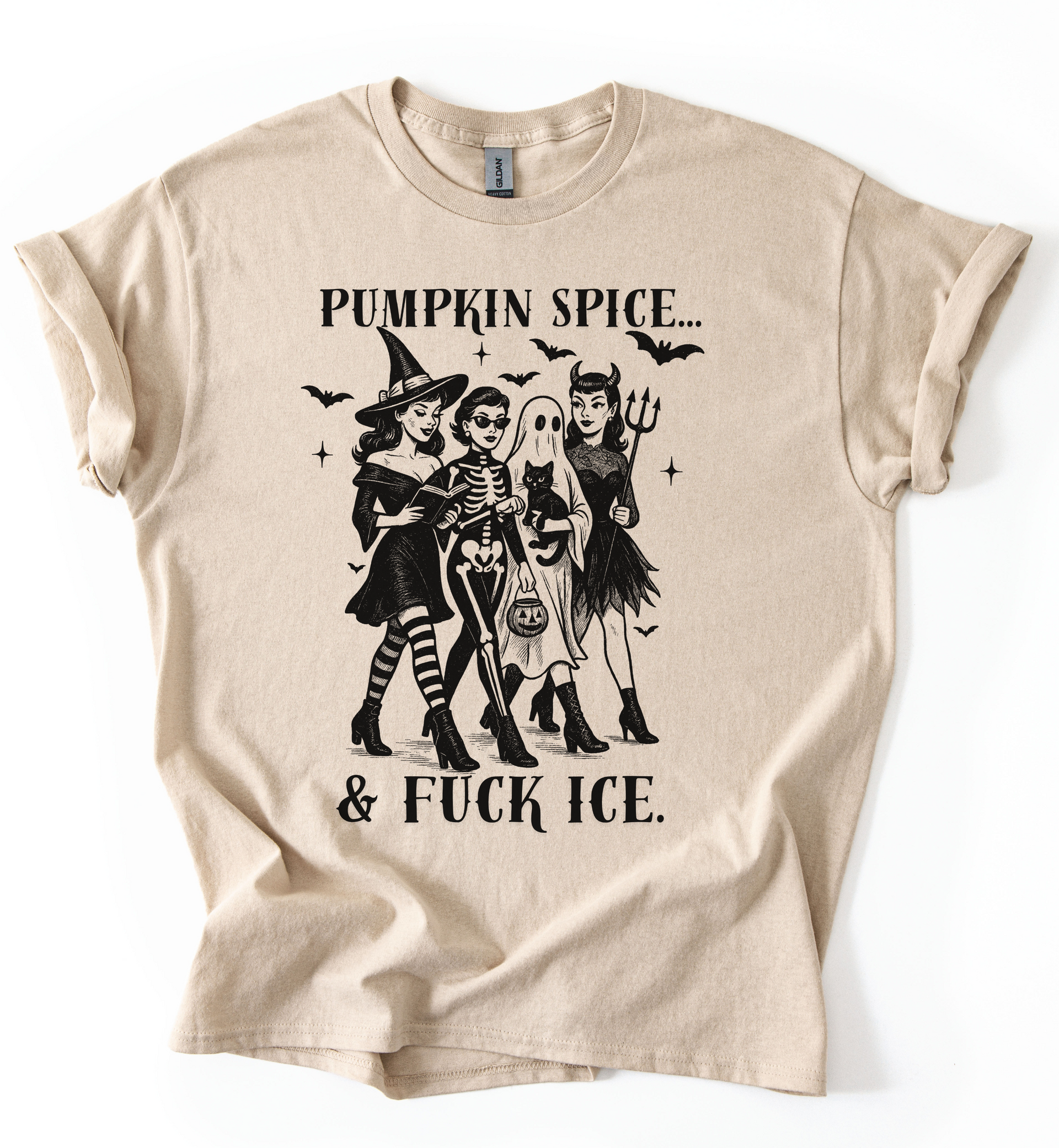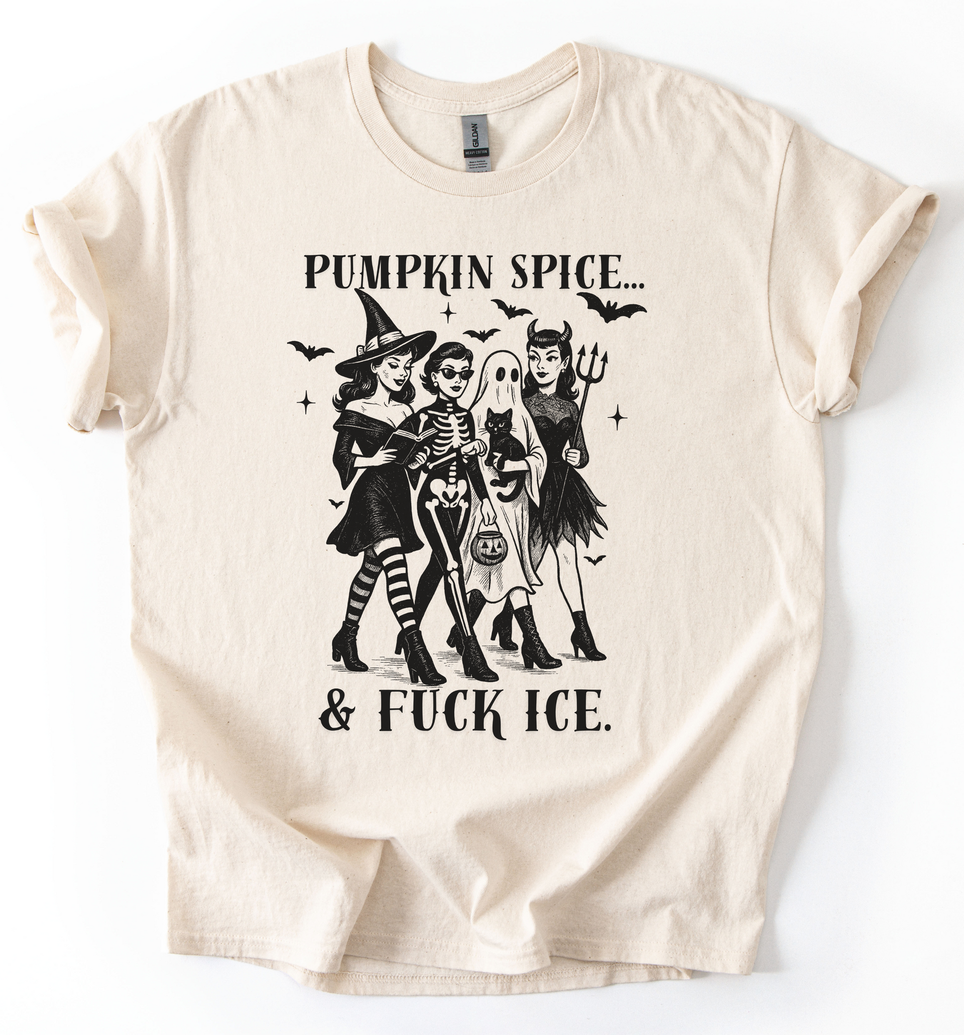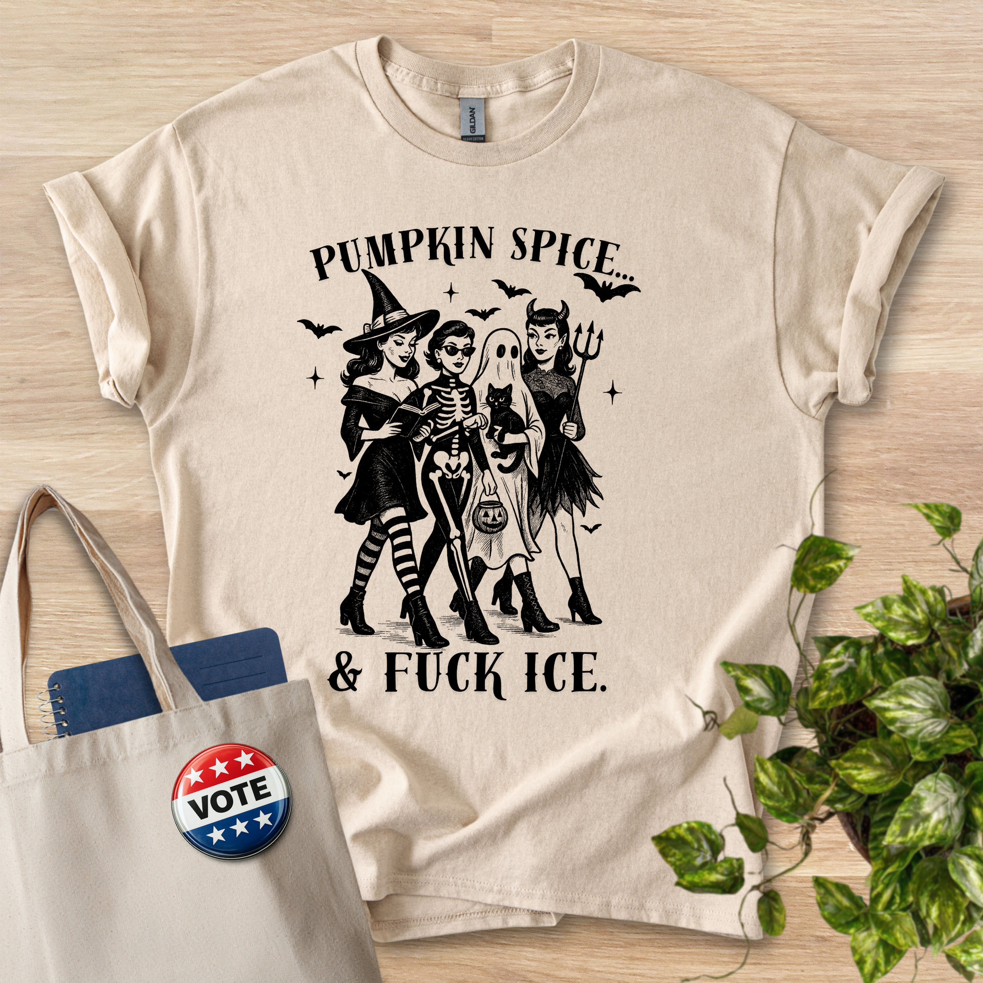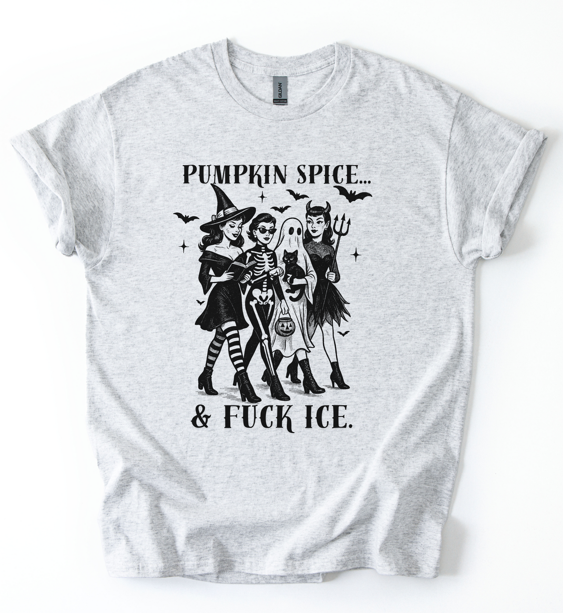Embrace your unique style with this Unisex Heavy Cotton Tee, designed for those who love to stand out while enjoying all-day comfort. The playful slogan 'Pumpkin Spice & Fuck Ice' captures the essence of the cozy fall season, making it a perfect fit for Halloween celebrations, Thanksgiving gatherings, or casual outings with friends. Its relaxed fit and classic crew neckline ensure that it can easily transition from everyday wear to festive occasions. Whether you're a fan of autumn vibes or just looking for a fun addition to your wardrobe, this tee resonates with adults who appreciate comfort and personality in their clothing. A must-have for those who love expressing their seasonal spirit!