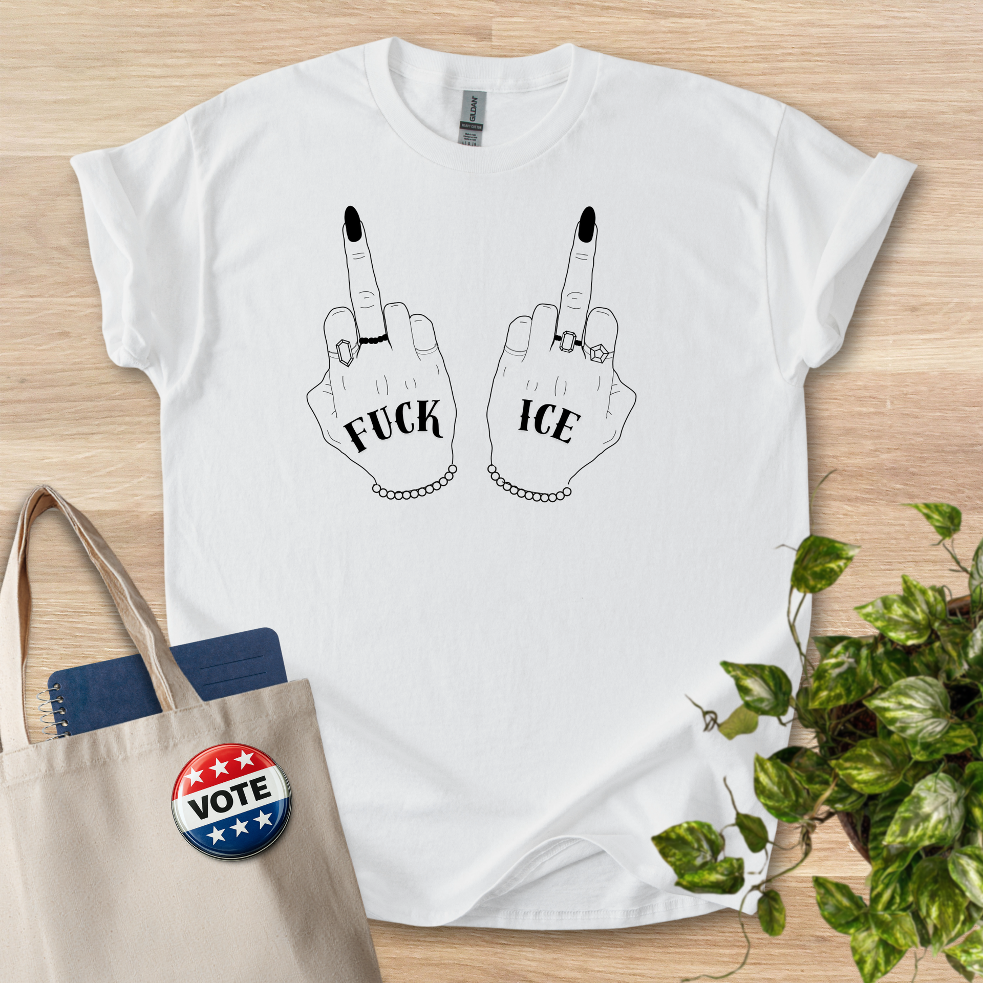 A soft, sturdy cotton tee that carries a quiet, rebellious voice. The slim black line illustration at the chest—two inverted middle fingers with small text—reads like a private joke for those who favor dry humor and low-key provocation. Wear it over denim on a city walk, layered under a jacket at a late-night show, or folded into a weekend bag for trips where comfort matters as much as attitude. The classic crew neck and relaxed fit make it easy to move in; the subtle print keeps the message personal rather than loud. This is for people who prefer understatement with an edge — casual, honest, and built to last.