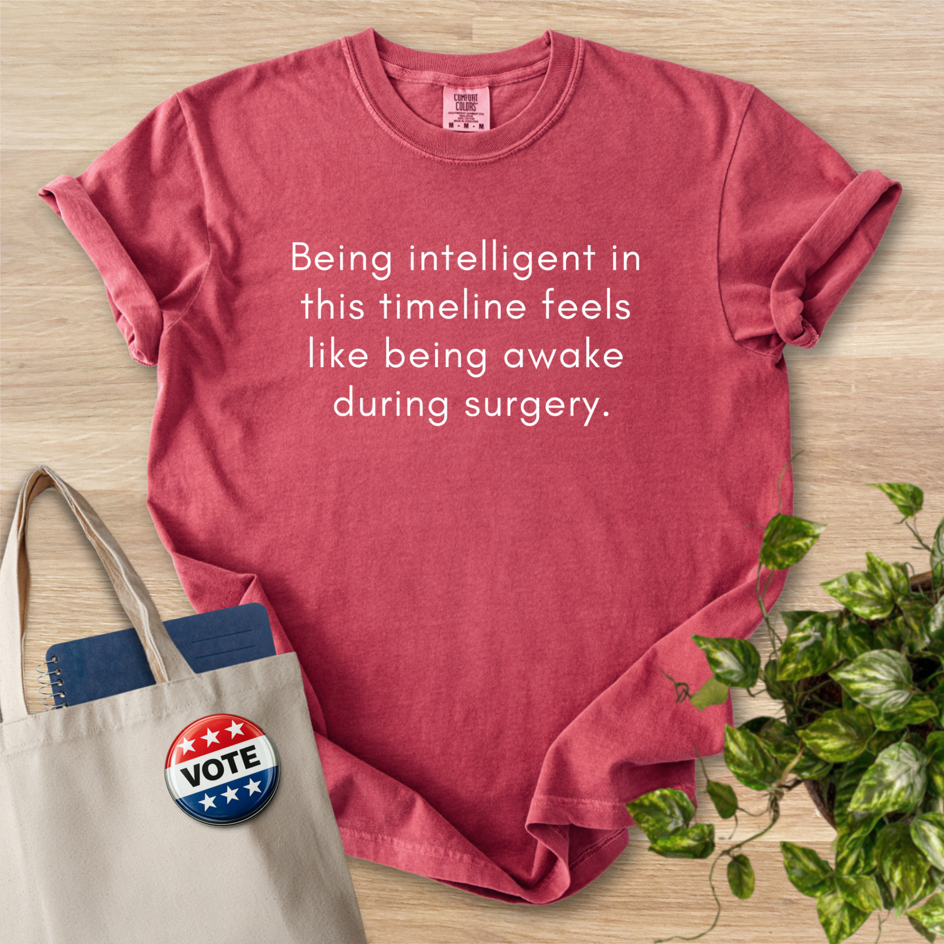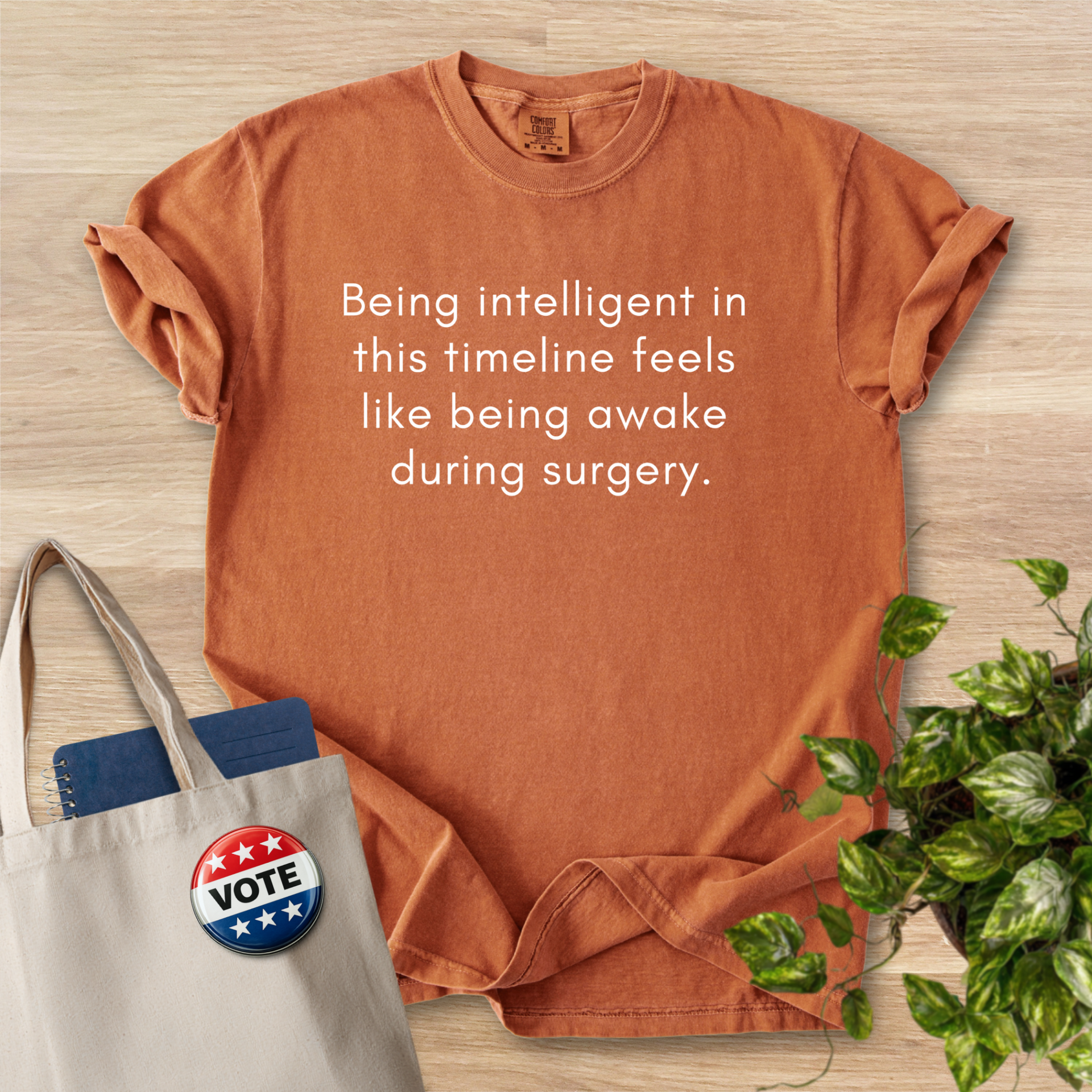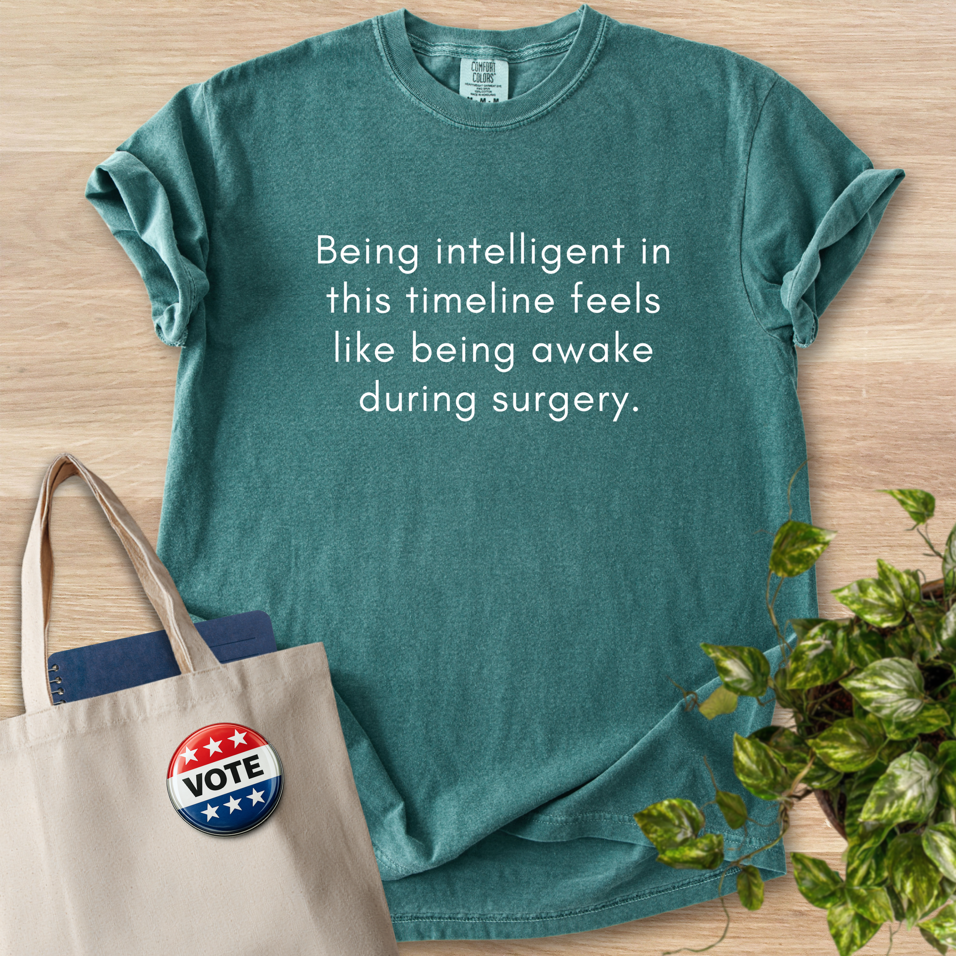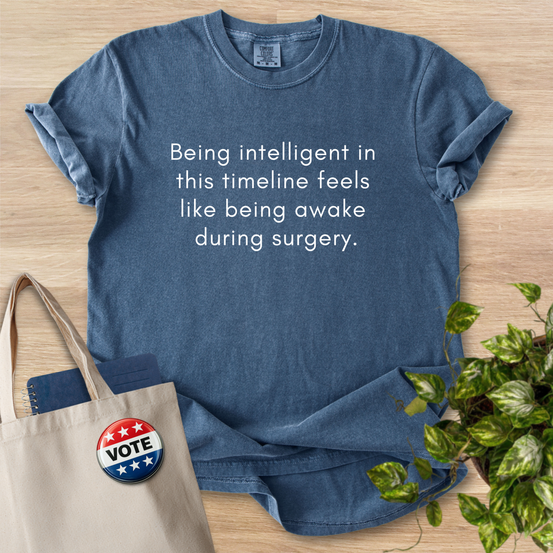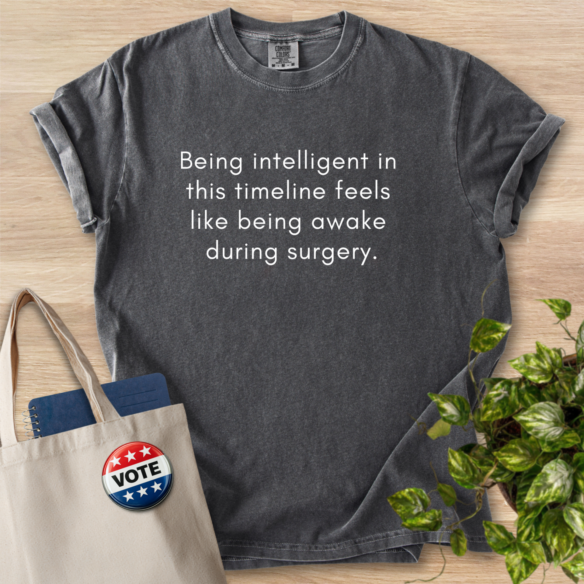 Soft, lived-in tee that speaks in quiet, dry humor. The garment-dyed cotton has a muted, vintage tone and a softly broken-in hand that invites you to reach for it first. The message sits centered and unadorned, the kind of understated line that sparks a knowing smile and a short conversation. Wear it to low-key meetups, late-night study sessions, or errands when you want comfort without shouting. The relaxed cut and substantial fabric hang well on different body types and hold their shape after wash, while the sewn-in label keeps the neck tidy. This shirt feels like an easy companion—wry, comfortable, and ready for everyday wear.