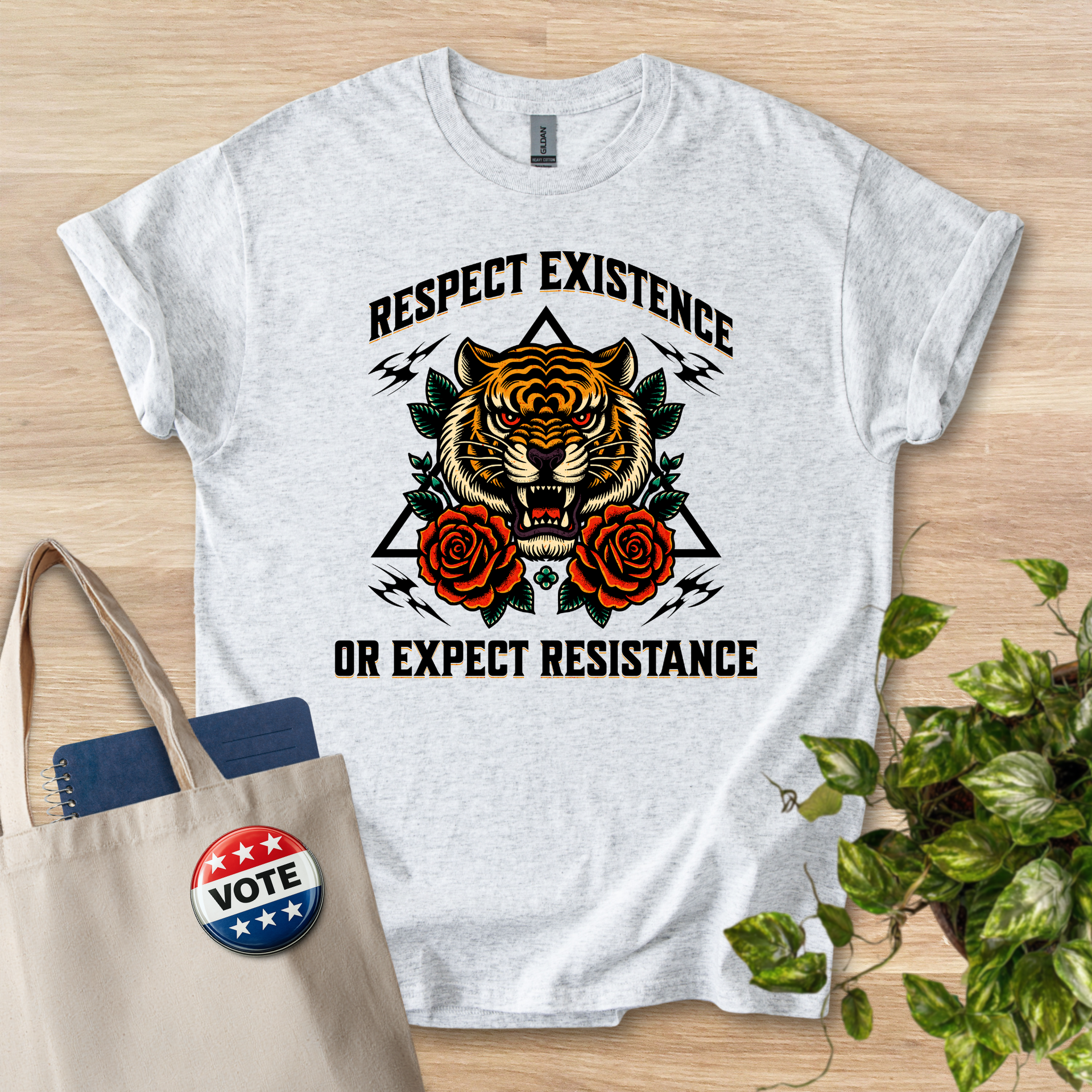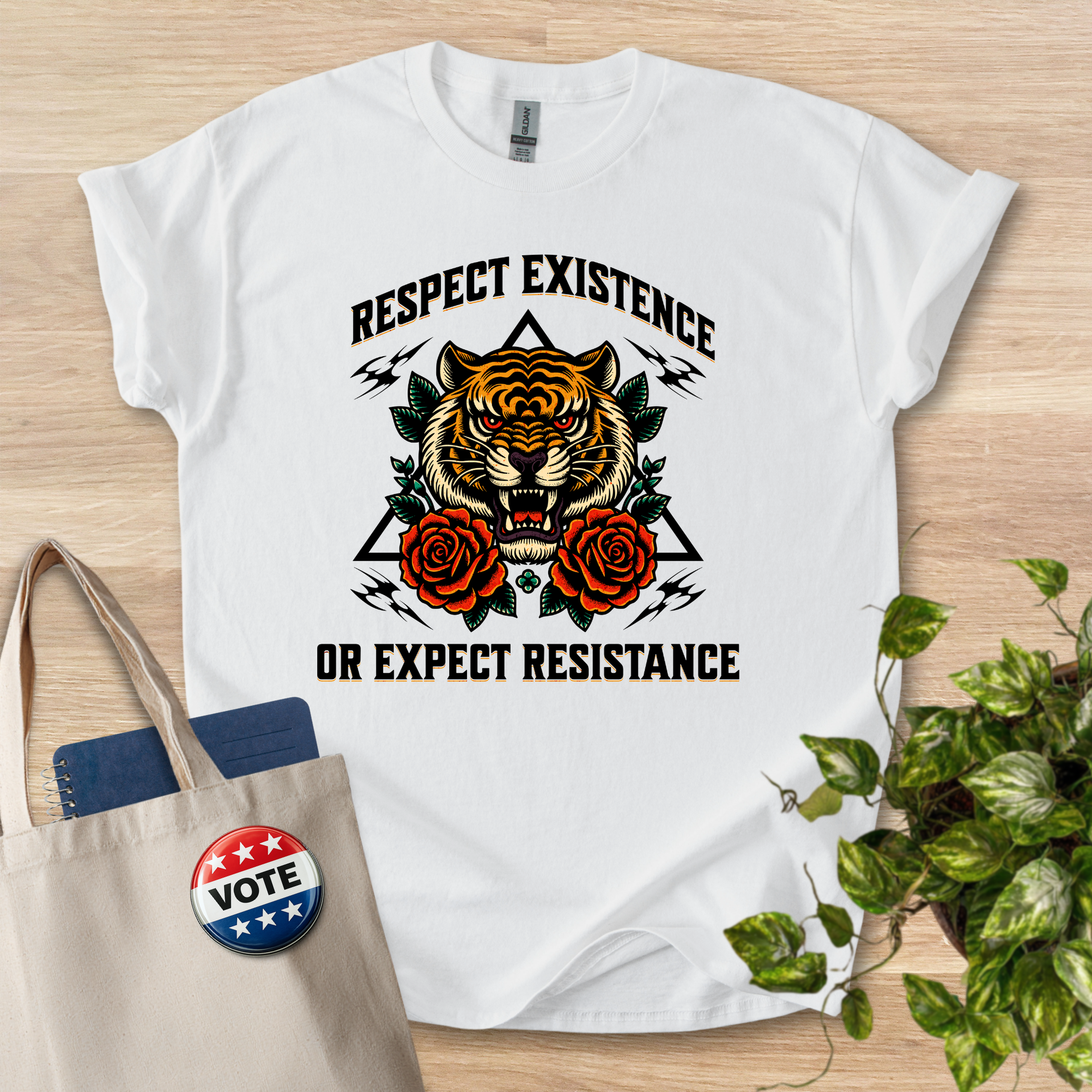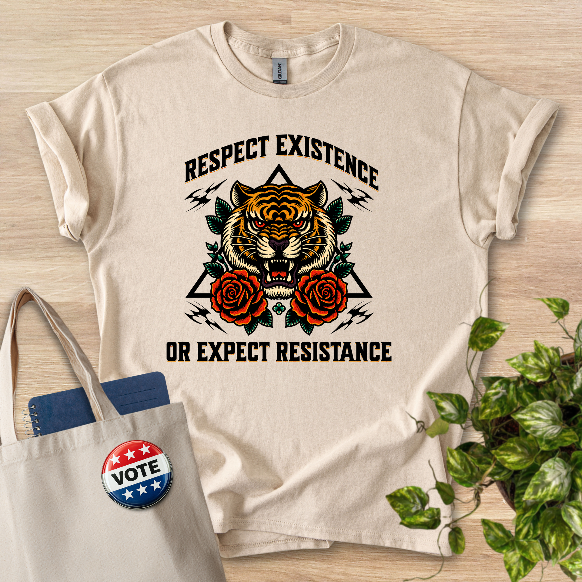 Bold Tiger Graphic Tee - Respect Existence, Unisex Cotton Shirt for Animal Lovers, Statement Fashion, Casual Wear, Gift Idea