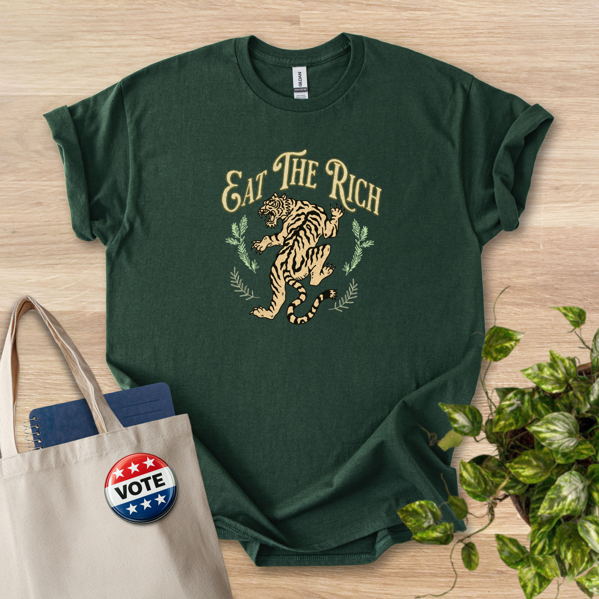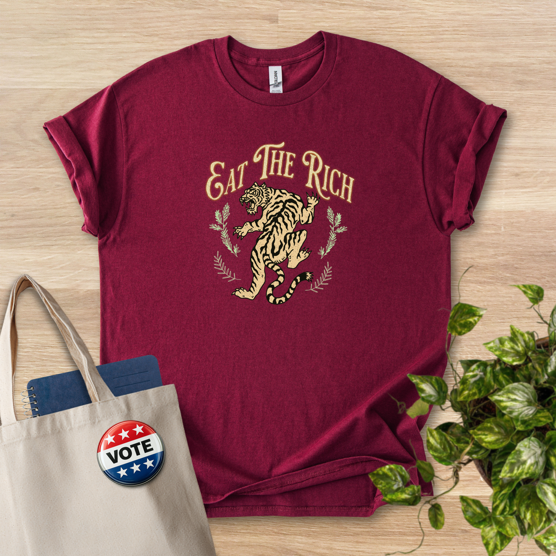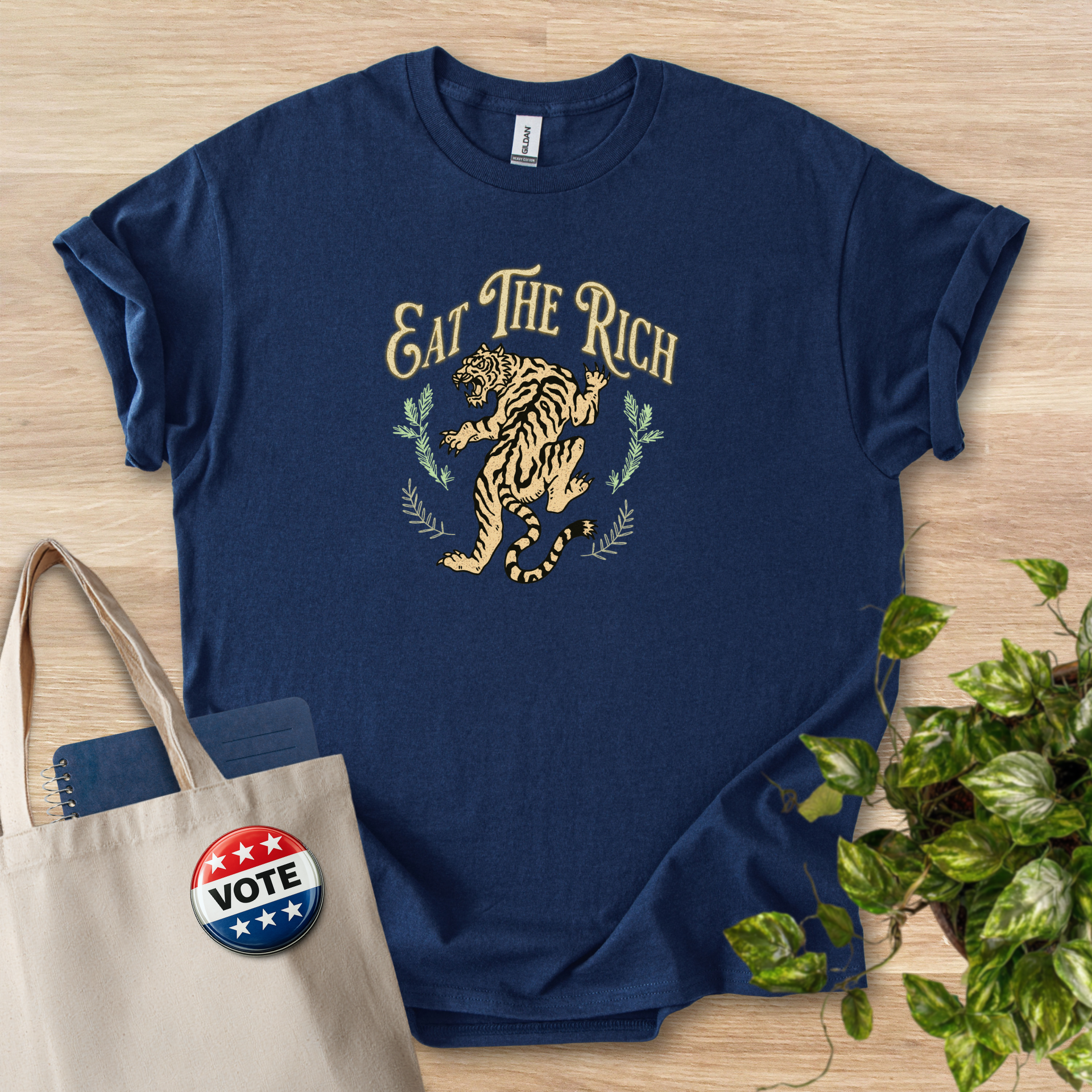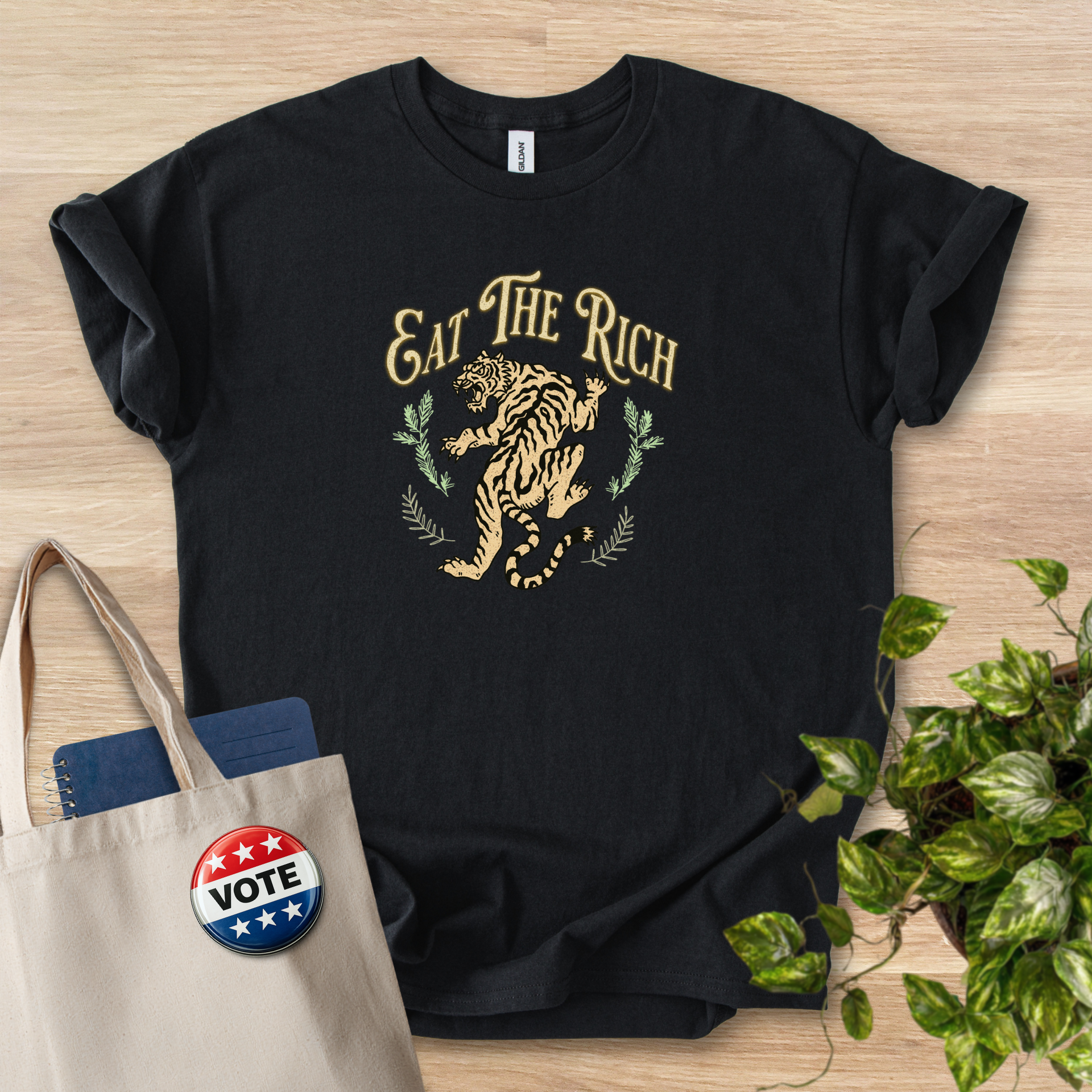 A bold, vintage-inspired tee that speaks with attitude. The soft, midweight cotton feels familiar from the first wear while the aged-style tiger illustration and hand-lettered slogan lend a rebellious, skate-punk energy. Wear it under a denim jacket or layered with flannel for nights at the venue, or throw it on for coffee runs when you want to make a statement without shouting. The relaxed crew neck and classic cut keep the look wearable every day; the print’s distressed palette pairs easily with faded jeans and worn boots. This shirt sits comfortably in the wardrobe of someone who prefers honest, gritty graphics and lived-in style.
