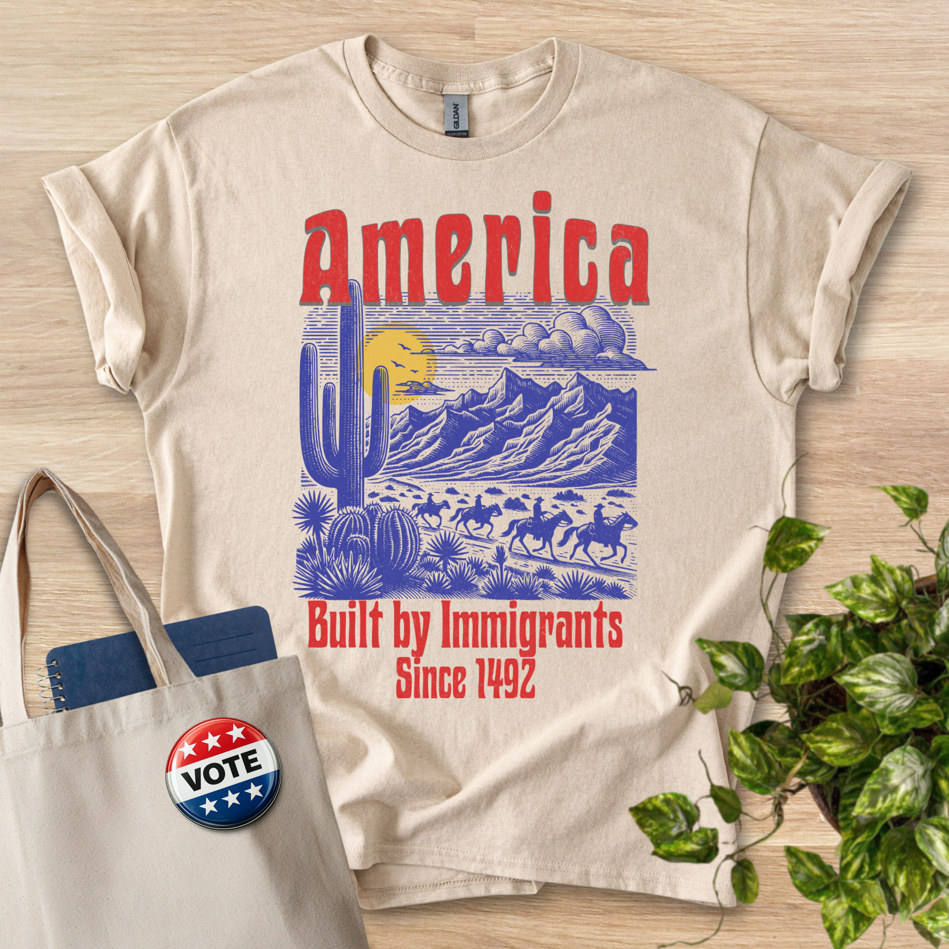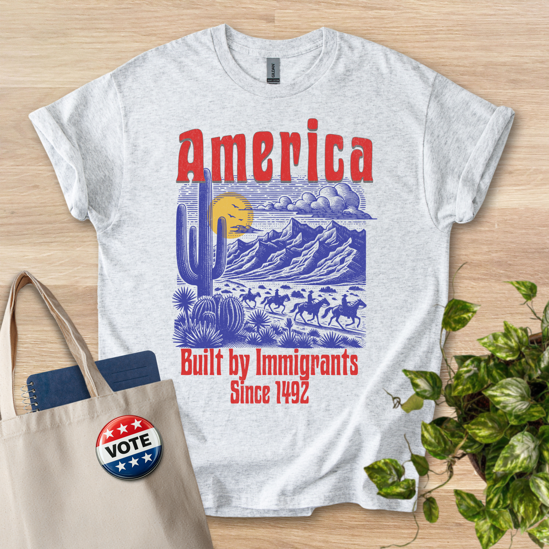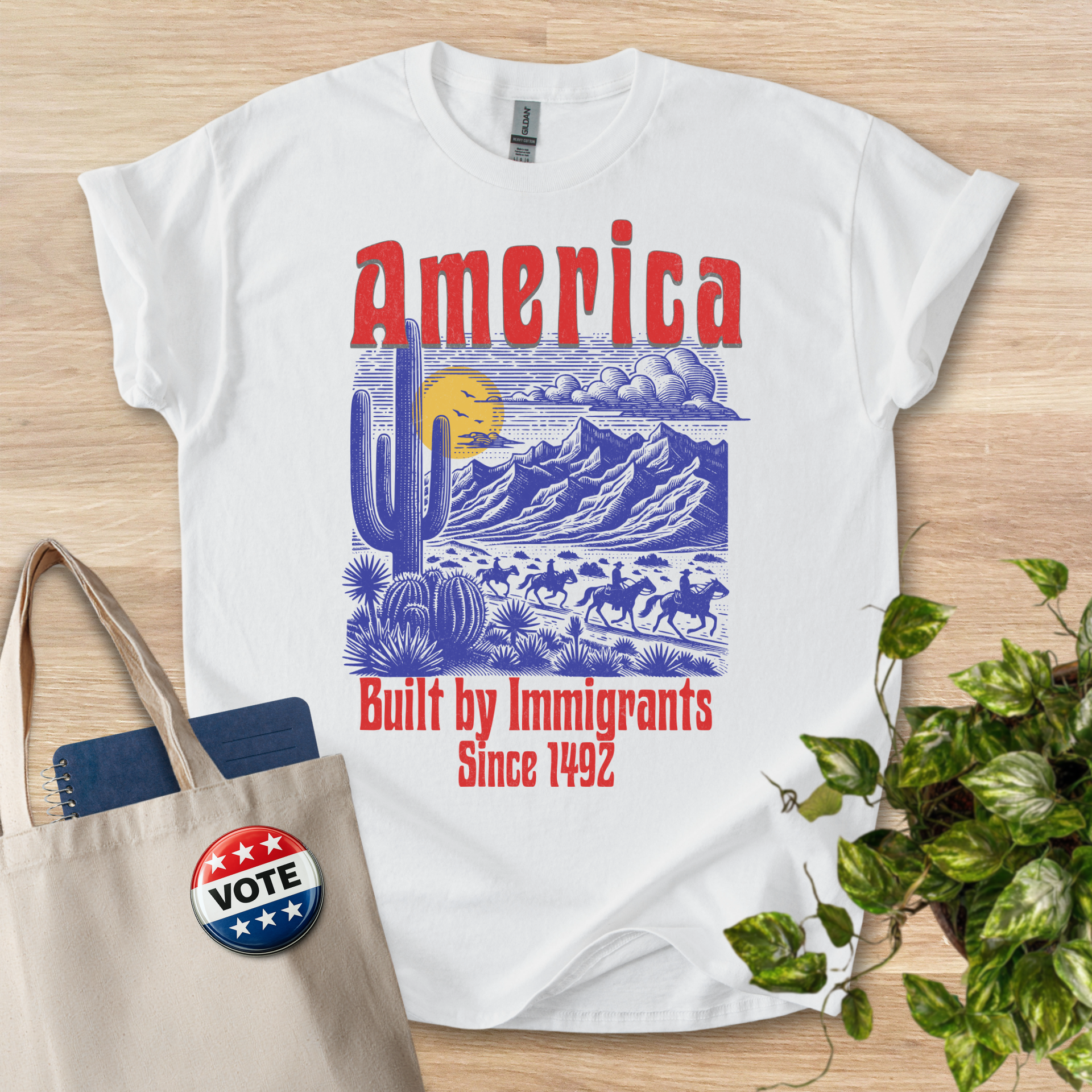 America Built By Immigrants - Blue and Red